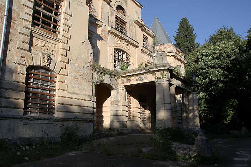 Фрагмент фасаду і ганок Розмір зображення: 800:533 піксел Фото Зенона Боровця і Богдана Тхора, 17 липня 2016 р. Вище | Наступна сторінка