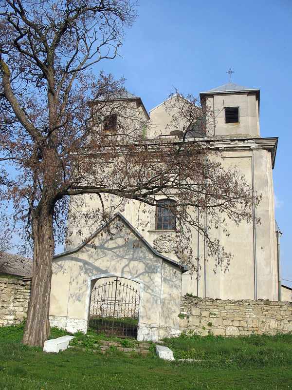 2004 р. Костел і брама. Вигляд із заходу Розмір зображення: 600:800 піксел Фото О.Крушинської, квітень 2004 р. Попередня сторінка | Вище | Наступна сторінка