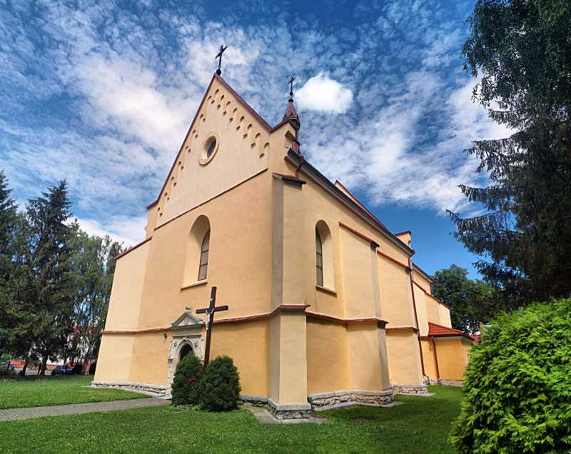 Костел розташований на головній площі. Вівтарем він орієнтований на південний схід. Спостереження М.І.Жарких, 7.07.1989 р.