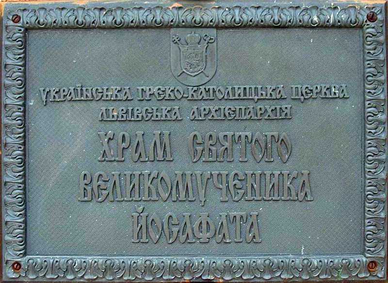 Напис: «Українська греко-католицька церква. Львівська архієпархія. Хвам святого великомученика Йосафата».