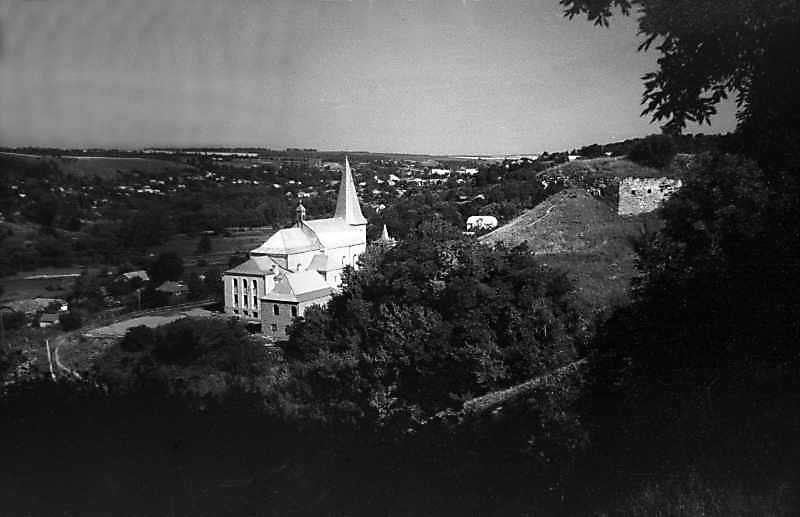 1995 р. Костел і замок. Вигляд з південного сходуРозмір зображення: 800:517 піксел 1995 р. 26 липня. Фото М.І.Жарких. Негатека, № 861-35. |