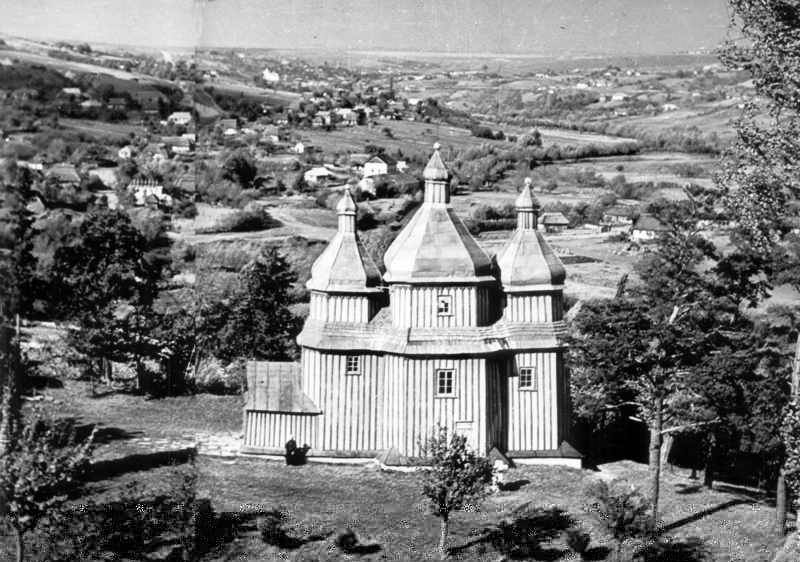 [1987 р.] Загальний вигляд з півдняРозмір зображення: 800:562 піксел Джерело: Titus D. Hewryk Masterpieces in wood: houses of worship in Ukraine. – New York, 1987, № 6. |