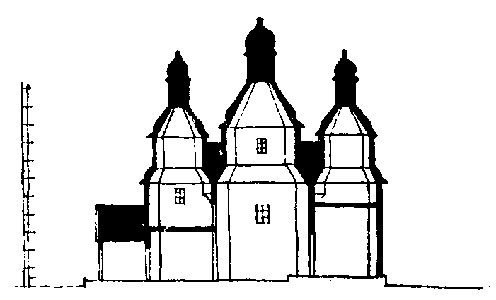 ПерерізРозмір зображення: 701:425 піксел Джерело: Юрченко П.Г. Дерев’яне зодчество України. – К.: 1949 р., с. 93. |