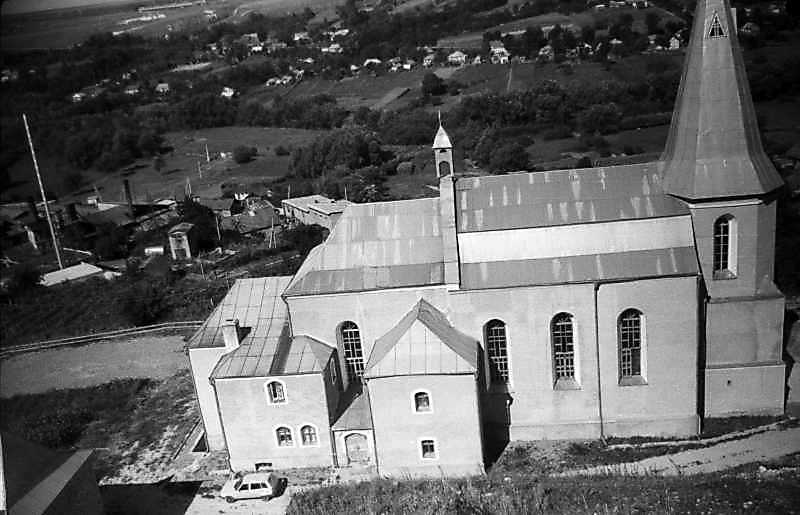 1995 р. Загальний вигляд з позиції С2, з площадки замкуРозмір зображення: 800:515 піксел 1995 р. 26 липня. Фото М.І.Жарких. Негатека, № 862-23. |