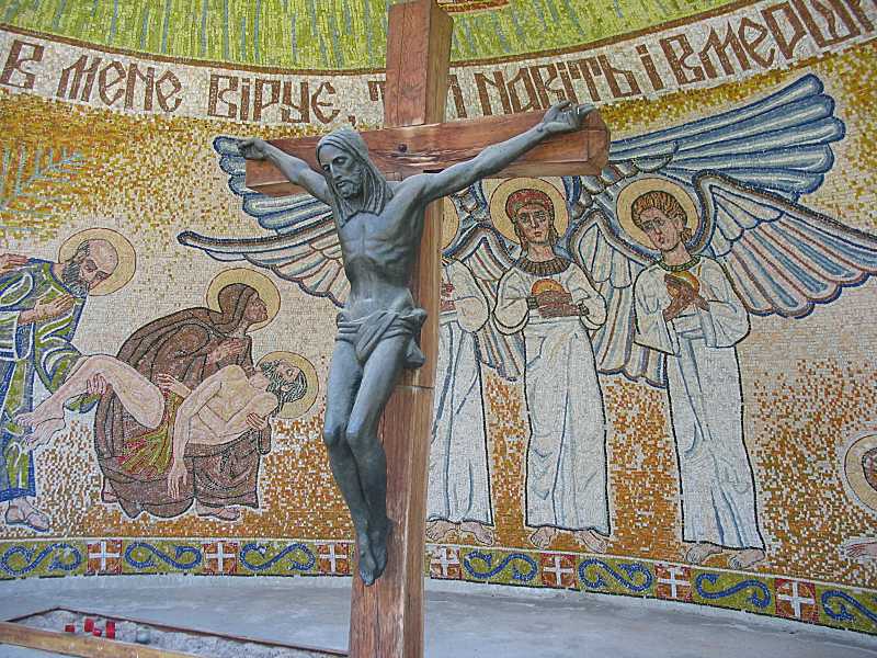 2007 р. Розп’яття на тлі мозаїкиРозмір зображення: 800:600 піксел Фото Зенона Боровця і Богдана Тхора, 14 червня 2007 р. |