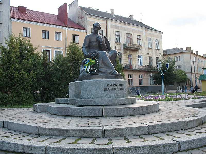 Пам’ятник поету Маркіану Шашкевичу, який бував у Золочеві, споруджено на Вічевій площі в 1993 р. Скульптори – Д. Крвавич, М. Посікіра. Архітектор – М. Федик.