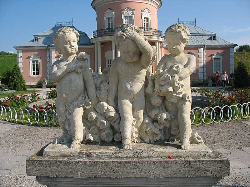 Скульптурна група Розмір зображення: 800:600 піксел Фото Зенона Боровця і Богдана Тхора, 14 червня 2007 р. Вкладені елементи 2009 р. Скульптурна група перед палацом
