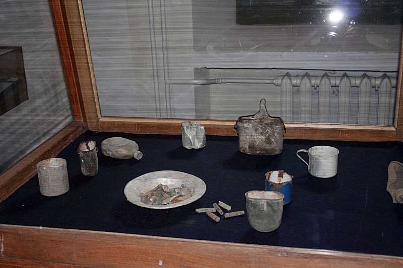 Кружки, фляга, тарілка і ложка, гільзи від набоїв, похідний котелок. Фото Зенона Боровця і Богдана Тхора, 13 серпня 2009 р.