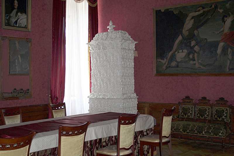 Куток з кахляною грубоюРозмір зображення: 800:533 піксел Фото Зенона Боровця і Богдана Тхора, 13 серпня 2009 р. Стіл для обідів, стільці, диванчик. Портрет, картина міфологічного змісту. |