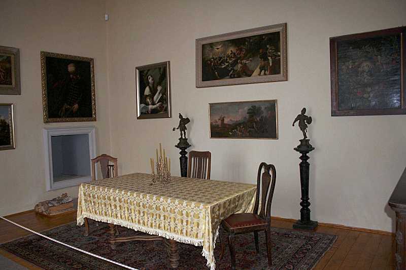 Стіл зі світником, стільці; картини релігійного змісту; дві статуетки.