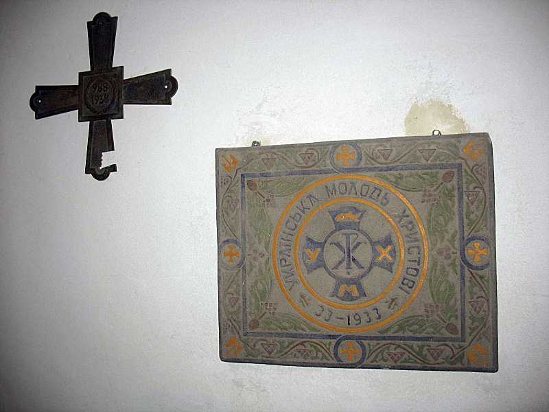 Хрест. Хоругва 1933 р.Розмір зображення: 800:600 піксел Фото Зенона Боровця і Богдана Тхора, 2 вересня 2012 р. На хоругві напис: «Українська молодь Христу. 1933». |