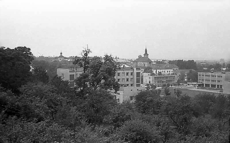 1977 р. Панорама із церквою Воскресіння і костеломРозмір зображення: 800:498 піксел Вигляд з валу замку. 1977 р. 18 липня. Фото М.І.Жарких. Негатека, № A326-06. |