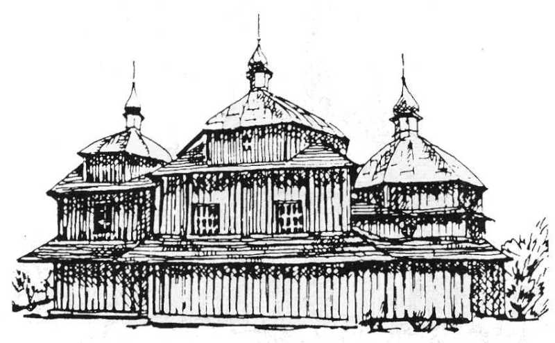 Загальний вигляд з позиції С2. Рисунок Оксани БойкоРозмір зображення: 800:494 піксел Джерело: Слободян В. Церкви Холмської єпархії. – Львів: Наукове товариство ім. Шевченка, 2005 р., с. 67. |