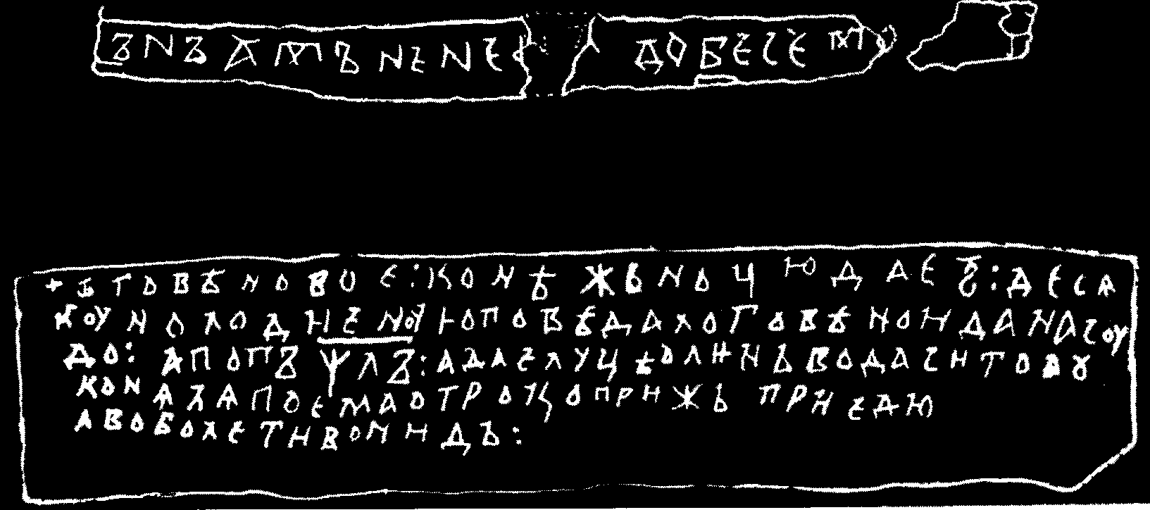 Грамоти на берестіРозмір зображення: 1633:724 піксел Перші грамоти на бересті (XII ст., Звенигород Галицький). Джерело: Історія української культури. – К.: 2001 р., т. 1, с. 720. |
