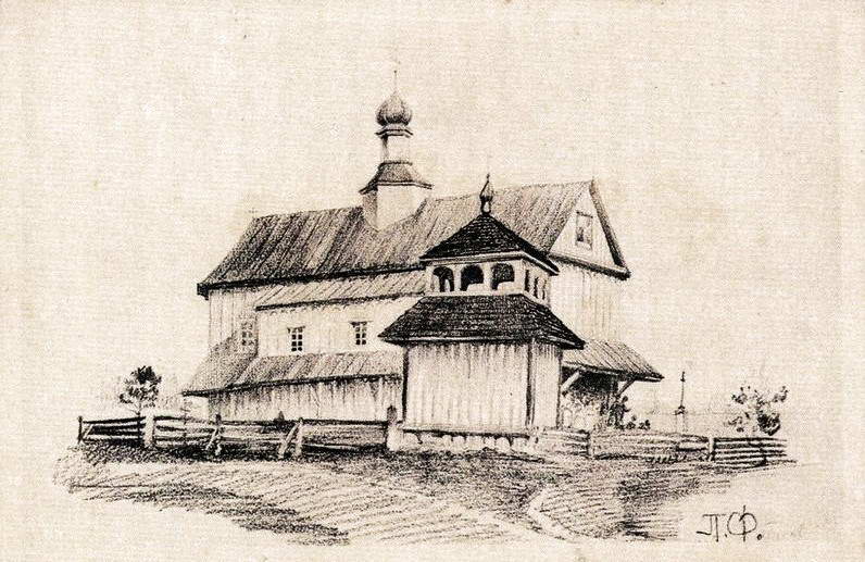 Церква Успення Пр. Богородиці і дзвіниця в Єлизарові (Звинячому). Автор Петро Фетісов, 1916 р.