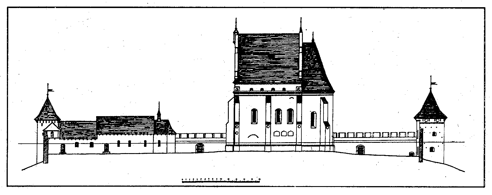 Вигляд трапезної, Успенської церкви та північно-східної вежі з півдня Розмір зображення: 1714:680 піксел Попередня сторінка | Вище | Наступна сторінка