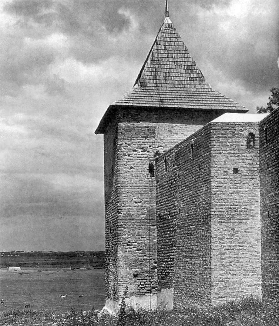 Мури, що оточують монастирське подвір’я по периметру, – цегляні. У їх верхній частині влаштовано дерев’яний бойовий хід біля бійниць. Кути підсилено наріжними двоярусними баштами. Три з них – квадратні в плані, перекриті чотиригранним наметом. Круглу в плані наріжну південно-східну оборонну башту, круглу південну башту та значну частину південного оборонного муру розібрано при будівництві школи наприкінці XIX ст.